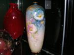 Beautifully decorated tall slim bottle vase, with lots of confusing marks on the base. Vase is approx 11 inches tall, with very fine decoration, raised gilding, minor flake at the neck, otherwise good. I have had this vase for quite a while and been looking for info almost daily. Over to you!