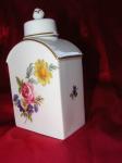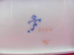 Had this for rather a long time, and never been able to identify it. 13 cm tall to top of stopper, which has a cork inside it. 7 cm across the base. Mark underneath is under glaze and is blue. Condition is very good.