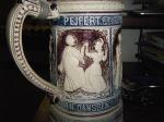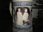 a friend of mine's husband has just passedd and she gave me this stein with dutch words on it and pictures of people across the sides. the stein itself is ceramic with purple and blue coloring and words accompanying the pictures. I don't know any dutch and was able to translate only a few words. they are as follows;