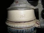 another odd thing about the piece is that the makers mark is on the top of the stein along the lip and the number of pieces made is on the bottom. the mark is numerical but obvious as the makers mark; 1 1/2 T is what it looks like, I can post pictures later but I'm honestly being rushed to find out where and wheen it is from first.