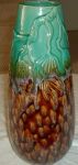 I recently found this vase at an estate sale and have trouble identifying it from its interesting unusual pattern. It may have had a backstamp at one time which has faded away. Does anyone know if this is a Weller or Roseville or McCoy? Hope someone with greater knowledge of these potteries or other pottery patterns can enlighten me. Thank You.