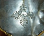 Please help Identify this mark. It is on 2 ceramic pieces and 1 brass/bronze piece. It is best photographed from the brass piece.